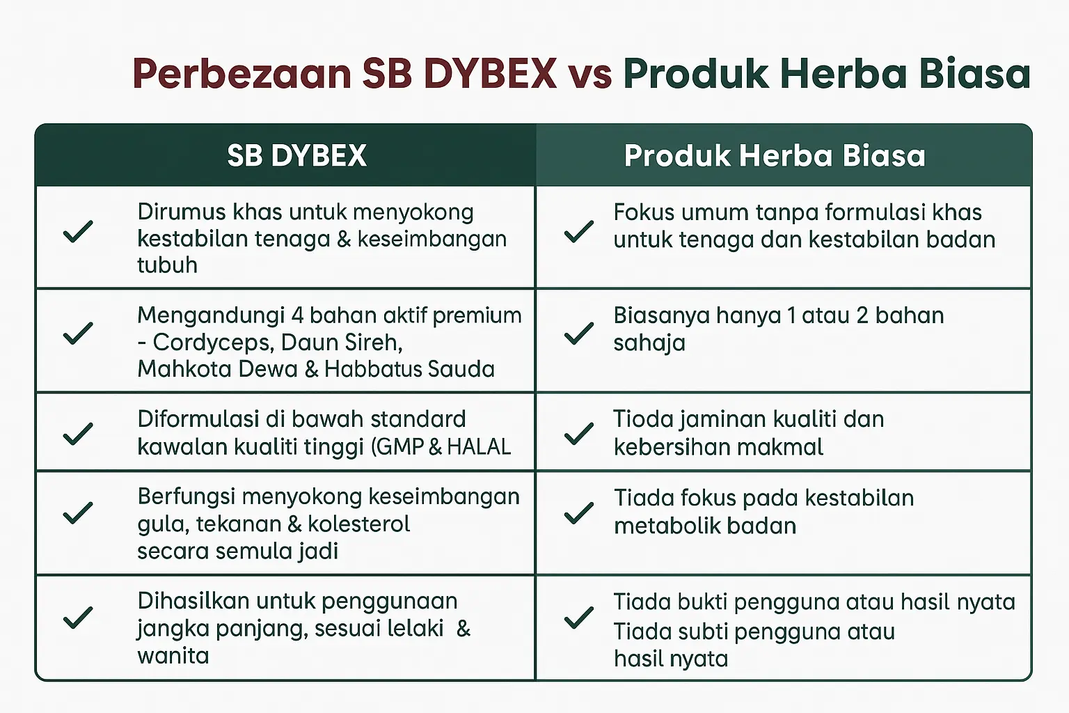 - Lesu/tenaga rendah: Kestabilan gula selepas makan (α-glucosidase) → kurang “glucose crash”.